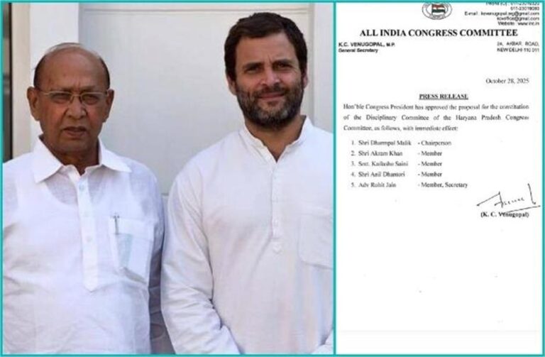अखिल भारतीय कांग्रेस कमेटी ने हरियाणा प्रदेश कांग्रेस कमेटी की अनुशासन समिति का गठन कर दिया है। कांग्रेस अध्यक्ष ने...