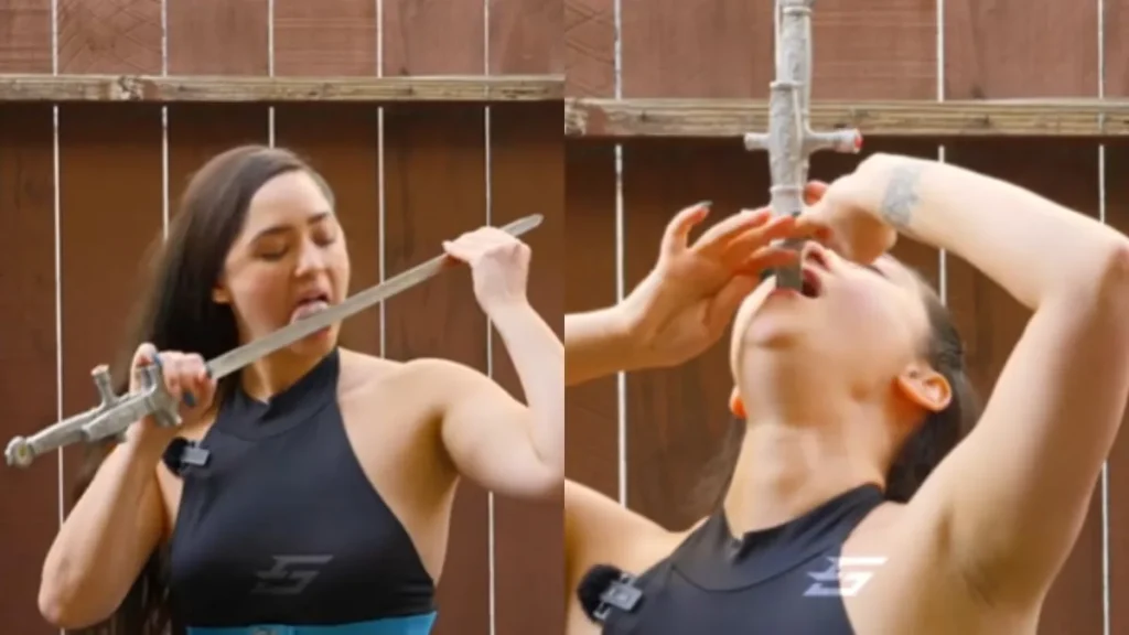 Video देख दंग रह गई इंटरनेट की जनता, लड़की ने मुंह में एक साथ घुसा लिए 3-3 तलवार