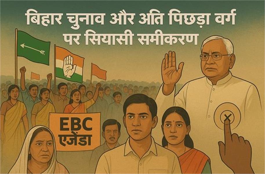 बिहार में चुनावी सरगर्मी तेज है और सभी प्रमुख दल अपनी-अपनी रणनीति के तहत अति पिछड़ी जातियों (EBC) को साधने की कोशिश कर रहे हैं। राज्य की राजनीति में यह वर्ग निर्णायक भूमिका निभाता है क्योंकि 36% आबादी के साथ यह बिहार का सबसे बड़ा सामाजिक समूह है। परंपरागत रूप से इसे मुख्यमंत्री नीतीश कुमार का मजबूत वोट बैंक माना जाता रहा है। हालांकि इस बार महागठबंधन भी इस वर्ग को आकर्षित करने के लिए विशेष एजेंडा तैयार कर रहा है। बताया जा रहा है कि महागठबंधन, अनुसूचित जाति-जनजाति एक्ट की तर्ज पर, “EBC एक्ट” लाने का वादा कर सकता है। साथ ही पंचायती राज और नगरीय निकाय चुनावों में EBC आरक्षण की सीमा 20% से बढ़ाकर 30% करने की घोषणा की तैयारी है।