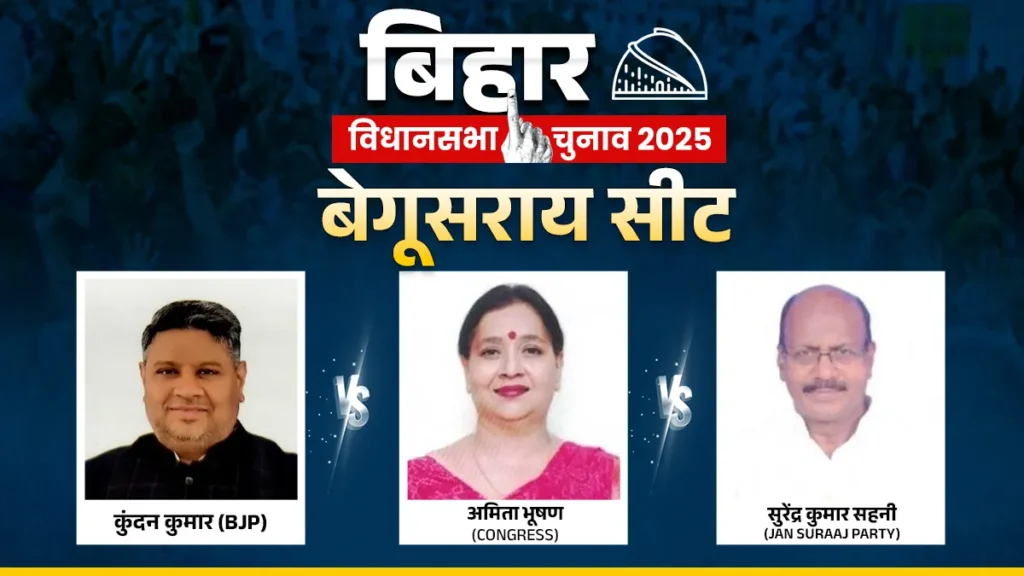 बेगूसराय में इस बार का विधानसभा चुनाव कुंदन कुमार (भाजपा), अमिता भूषण (कांग्रेस) और सुरेंद्र कुमार सहनी (जन सुराज पार्टी) के बीच एक बेहद अहम त्रिकोणीय मुकाबला बनता जा रहा है। बिहार में बदलते राजनीतिक समीकरणों के साथ, बेगूसराय में एक बार फिर एक कड़ा चुनावी मुकाबला देखने को मिल सकता है। यहां मतदाताओं की भावना, स्थानीय नेतृत्व और पार्टी गठबंधन निर्णायक भूमिका निभाएंगे। भाजपा के मौजूदा विधायक कुंदन कुमार, जिन्होंने 2020 में मामूली अंतर से जीत हासिल की थी, को कांग्रेस की अमिता भूषण और प्रशांत किशोर के उम्मीदवार सुरेंद्र कुमार सहनी के नेतृत्व वाली उभरती हुई जन सुराज पार्टी से कड़ी चुनौती मिल रही है।