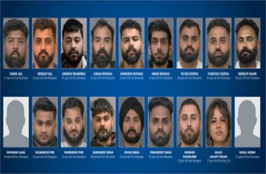 इनमें किंग सिटी की 37 वर्षीय महिला हलेह जावेदी तोराबी और ब्रैम्पटन के 17 पुरुष शामिल हैं। जिन पुरुषों के नाम सामने आए हैं उनमें इंद्रजीत धामी (38), परितोष चोपड़ा (32), गुरबिंदर सिंह (28), कुलविंदर पुरी (25), परमिंदर पुरी (31), इंद्रजीत बल (29), वरुण औल (31), केतन चोपड़ा (30), नॉर्मन ताज़ेहकंद (32), पवनदीप सिंह (25), दीपांशु गर्ग (24), राहुल वर्मा (27), करण बोपाराय (26), मनकीरत बोपाराय (22), सिमर बोपाराय (21), जोवन सिंह (23) और 25 वर्षीय अभिनव भारद्वाज शामिल हैं। पुलिस ने कहा कि आरोपियों पर आपराधिक गिरोह चलाने, जबरन वसूली करने, धोखाधड़ी, हथियार रखने और अन्य से संबंधित कुल 97 आपराधिक मामले दर्ज हैं।